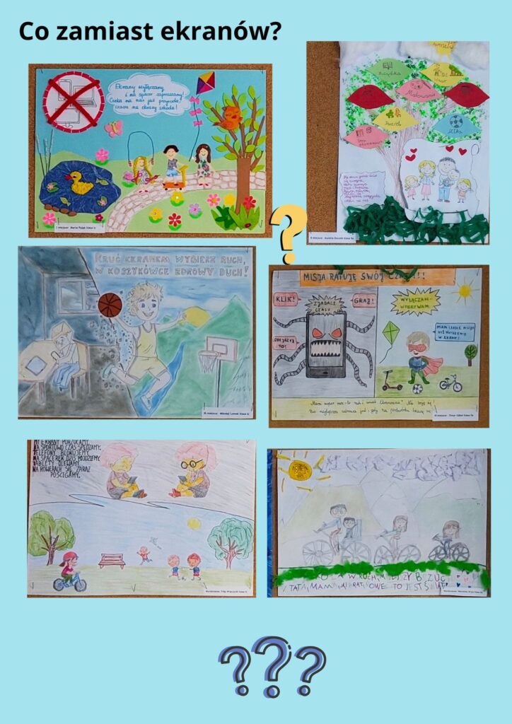 Rodzinny konkurs plastyczny Ponadto, w ramach Tygodnia Profilaktyki, odbył się angażujący rodzinny konkurs plastyczny z rymowanką pod bardzo aktualnym hasłem „Co zamiast ekranów?”.