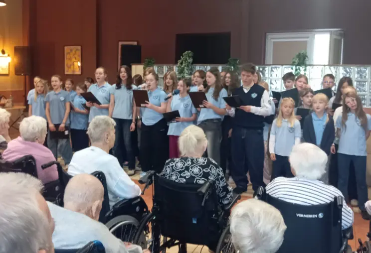 Występ trwał ponad godzinę i był pełen ciepła oraz głębokich emocji. Uczniowie z wielkim zaangażowaniem wykonywali utwory, a pensjonariusze aktywnie włączali się w śpiew, nucąc dobrze znane sobie melodie. Atmosfera była naprawdę magiczna – nie zabrakło chwil wzruszenia i łez, zarówno po stronie młodzieży, jak i seniorów. Była to piękna lekcja empatii i międzypokoleniowej więzi.